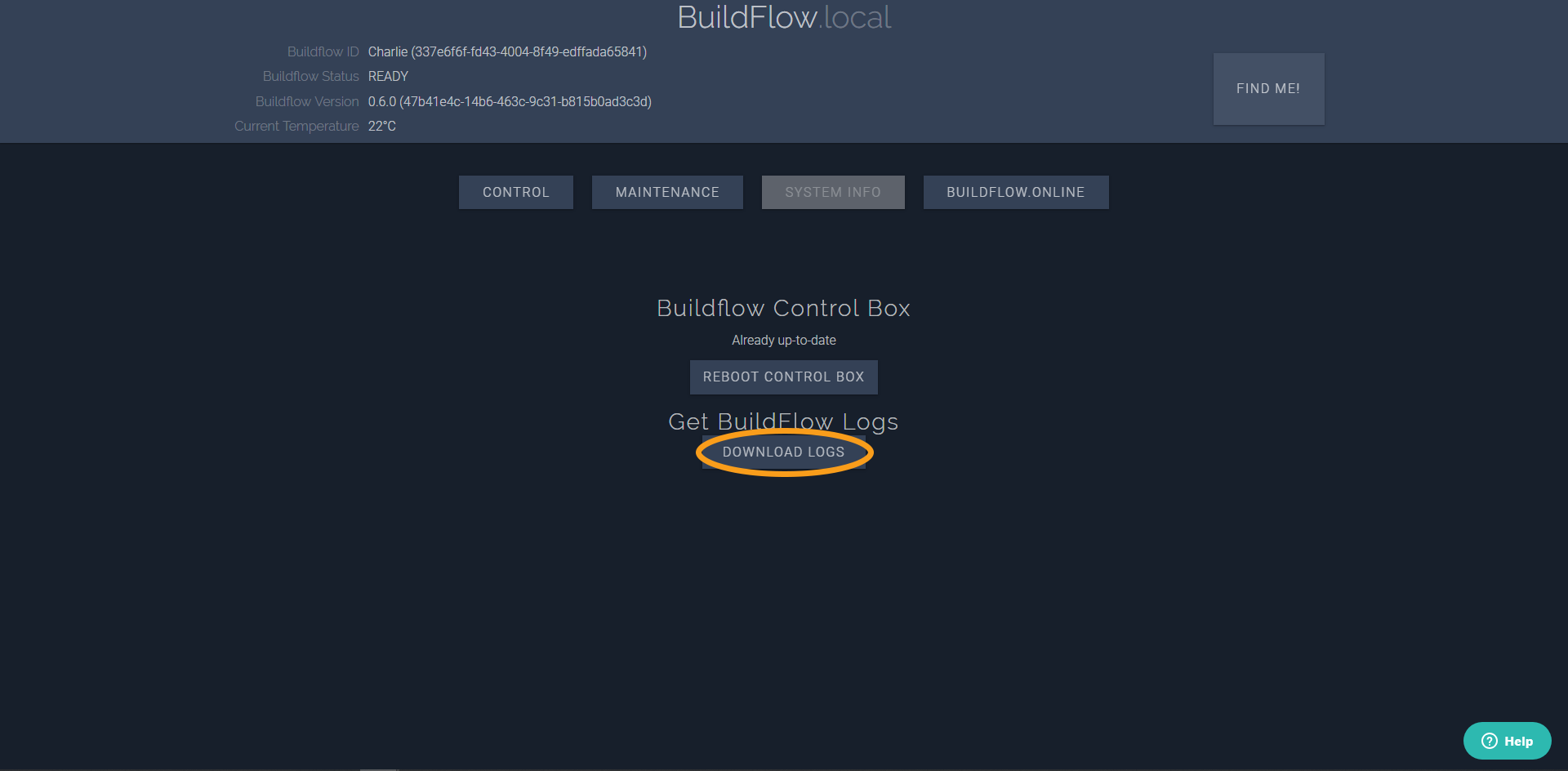 - Select 'DOWNLOAD LOGS'. Only click the button once, it usually takes a moment for BuildBee to generate the log file.